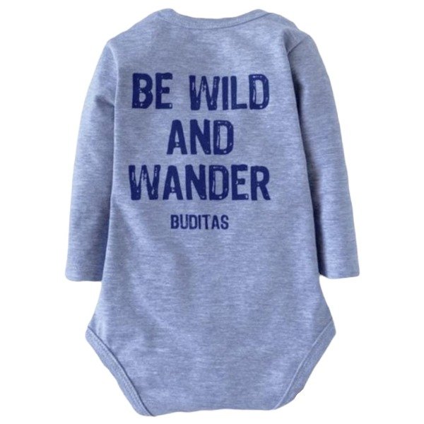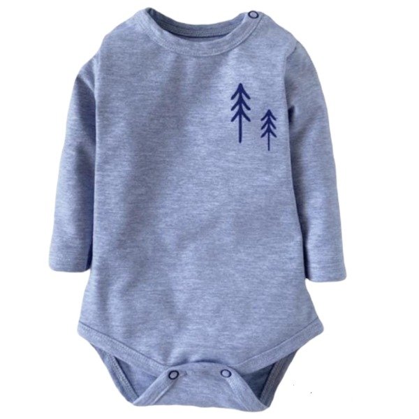Body mangas largas de algodón. estamnoado de pinos estilo nórdico en el frente , y leyenda en tono azul en el dorso.