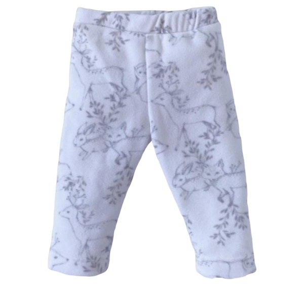 Calza de polar blanca con estampas en color gris de venados. Cintura con elástico