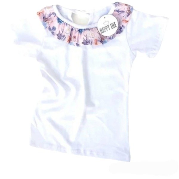 Remera de algodón manga corta con cuello en volado estampado