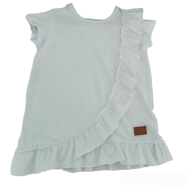 Remera de algodón blanco. Cruzada y con detalles de volados.