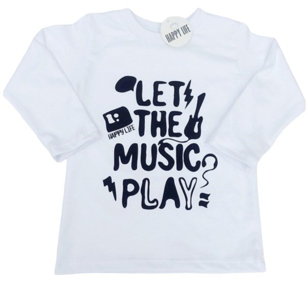 Remera de algodón en color blanco, con estampa en negro con la leyenda Let the music play